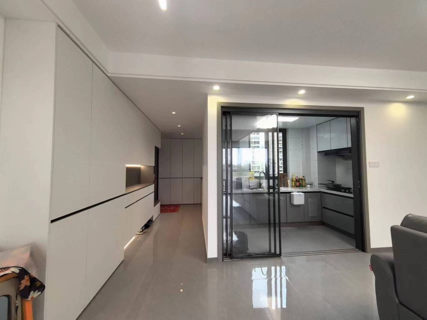 这是昆山张浦绿地境启澜庭小区一套装修实景案例,建筑面积115平米,三房两厅,整体空间开放融合,张弛有度,在简约轻奢的空间氛围搭配下,以优雅细致为主,色彩明亮,给人一种气度非凡,舒适自在的感觉。