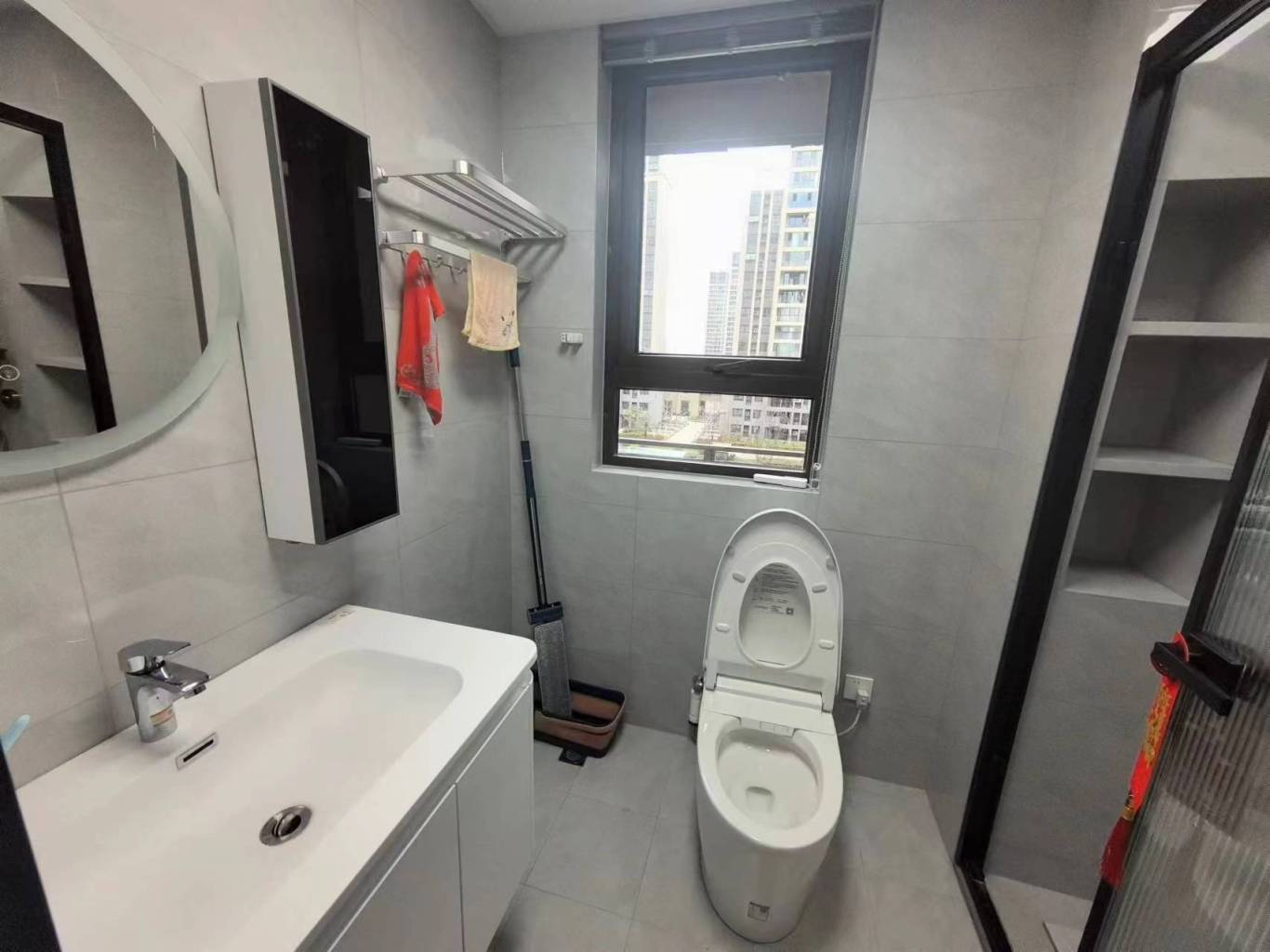客卫,干净清爽,浅色的瓷砖,不容易藏灰。镜面柜和壁龛,收纳一绝!