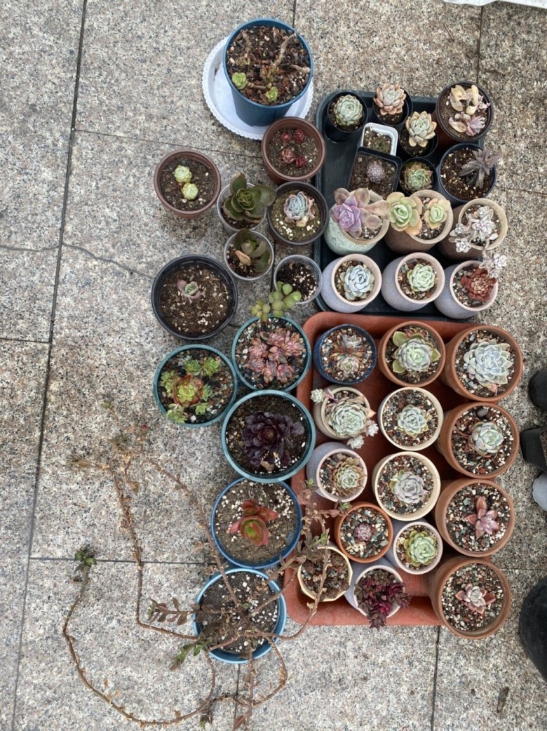 多肉出坑,40盆多肉带盆带土,送全新陶粒1L,全新椰砖1块,全新颗粒土10斤,打包100元,陆家高中附近自提,可小刀