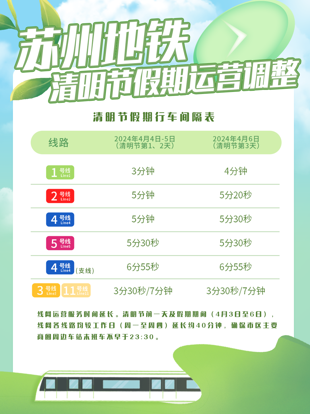 为保障清明节期间市民乘客出行安全便捷,苏州轨道交通计划对线网运输计划调整如下: