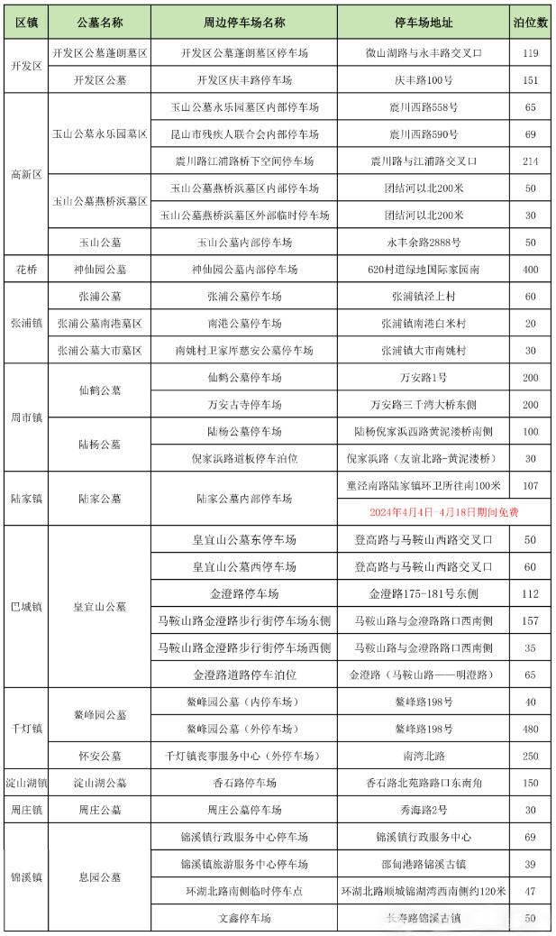 清明期间,预计昆山各公墓周边道路流量增加,周边停车位数量有限。请广大市民朋友提前做好准备,避开拥堵路段,服从交警指挥,有效利用周边停车资源。