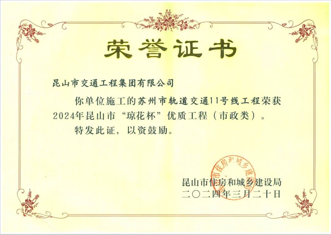 昆山市“琼花杯”优质工程旨在突出精品工程,营造创优环境,助力提升市政基础设施建设水平与现代化城市形象。