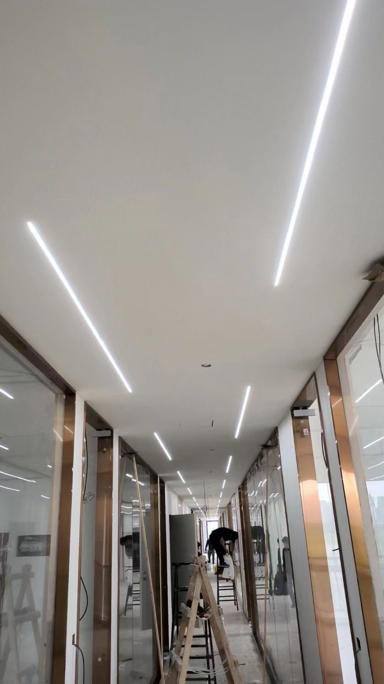 本案采用大面积玻璃密拼,玫瑰金铝合金收边,墙面木饰面板,配合玫瑰金的踢脚线,既彰显入驻企业的豪气,又不失时尚与大气,打造完美办公环境。