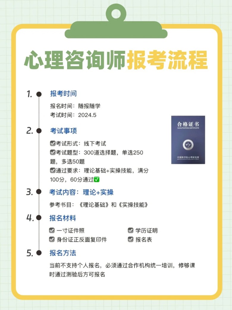 学心理咨询知识的好处:1.热门实用的心理咨询技能,具备从业要求职业心理咨询时薪300-1000元2.就业到私人心理诊所或者工作室年固定收入3000-8000元3.接触到心理大师,诊所、医院及工作室参观机会营造自己的交友圈子。4.增强心理健康,调节内心状态,保持乐观积极情绪,认知全新自己。5.克服人际关系缺陷,提高交流沟通能力维系重要人脉关系。6.懂得经营感情和婚姻之道,了解真实的另半,建立和谐家庭秩序。7.改善亲子关系,成长期创伤治疗,亲子关系修复、自闭症治疗。 中国科学院心理研究所,是我国唯一的国家级心理学科研教学机构,也是中国心理学会和中国心理咨询师协会筹委会的挂靠单位,拥有长期的心理学全学科的科研积累和雄厚的教学资源。 养对象:1.对心理学感兴趣或者想要从事相关工作的人。2.从事教育培训行业的人。3.从事企业管理的人。4.想要提高自己的生活质量,提高工作效率,成功教育,自律处理好家庭关系增加就业和创业机会的人群。心理咨询师的报考条件具备以下条件之一者:1.大专及大专以上学历不限专业,经过心理咨询师正规培训规定达到标准课时并取得结业证书。2.具有其他专业本科以上学历经心理咨询师三级正规培训达规定标准学时数。并取得就业证书。3.具有心理学,教育学,医学中级及以上专业技术职业任职资格后,经心理咨询师三级正规培训,打规定标准学时数,并取得结业证书。 心理咨询师的学习内容:1.理论知识。2.操作技能训练和见习。3.心理咨询技能训练。 才思教育集团培训课程:1、学历:自考,成考,国开,大专本科,专本套读,专转本,研究生考前辅导班2、会计类:初级/中级职称,税务师,CPA,会计做账培训、出纳做账培训3、建筑类:二建/一建,消防工程师,消防员,安全工程师,造价预算,八大员等4、职业技能:教师证,经济师,心理咨询师,语言类,人力资源管理师、陪诊师5、康养类:育婴师、月嫂、健康营养、健康照护师、健康管理师、养老护理、老年人能力评估师6、计算机:cad/sw/ug机械模具设计,ps/ai/平面设计,室内设计,商务办公,影视后期7、政府补贴:育婴,咖啡,茶艺,糕点面包烘焙,整理收纳,物流服务师,互联网营销师,视频创推员,物业管理员,人力资源管理师等(免费)客户服务师、电子商务师、详情私聊多人团报优惠