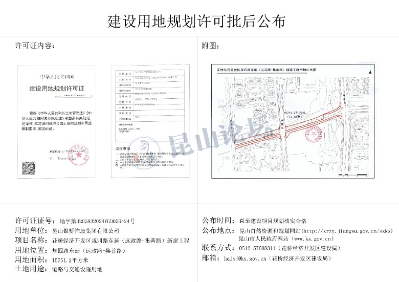 花桥经济开发区规四路东延(远政路—集善路)新建工程建设用地规划许可批后公布