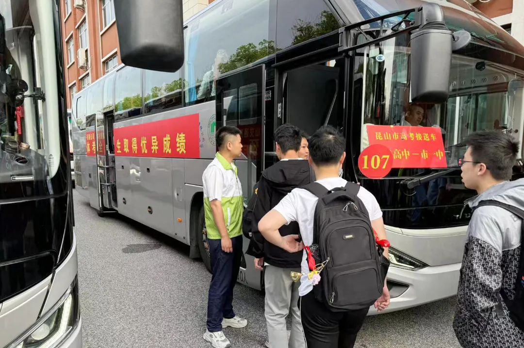 高考期间,车船公司共投入34辆大巴车,为巴城高级中学、文峰高级中学和开发区高级中学的考生们开通专线接送服务。