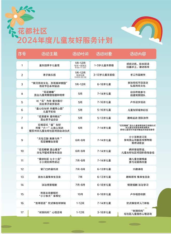 近年来,花都社区坚持“一米高度看城市”理念,积极探索儿童友好新思路,依托“两岸婚姻家庭联谊站”“苏莺民族团结工作室”“两岸青少年普法教育基地”等载体,以铸牢中华民族共同体意识为主线,围绕“‘花’开两岸情 同心育童心”主题开展两岸儿童有感度好、参与度强的多元化文化活动,努力打造“花都融情 昆台童享”儿童友好社区特色品牌,共同构建儿童友好生态圈。