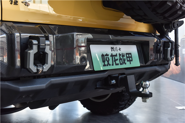 外观方面,猛士917蛟龙战甲在猛士917的基础上进了大量升级,把军车风格与中国龙元素相结合,形成“蛟龙战甲”独有的设计创意,最显著特征是采用了沙漠风暴军事涂装,前脸配备轻量化防撞护栏,进一步增强了车头的正面防护能力,并预留探照灯安装位,提升夜间行车安全。同时新车还进行了轻量化处理,包括前保险杠、车顶、发动机舱盖等位置使用碳纤维材质打造。