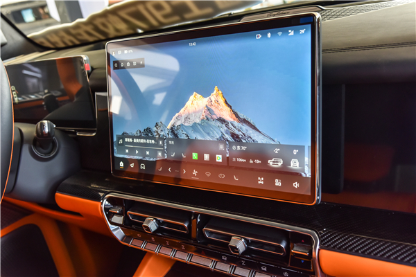 内饰方面,猛士917蛟龙战甲延续了猛士917的布局设计,配备由15.6英寸中控屏、12.3英寸全液晶仪表和12.3英寸副驾娱乐屏组成的三屏显示,同时还配备月影灰内饰,灵感来自中国龙,并提供冰霜白和赤焰橙两种改造色彩。