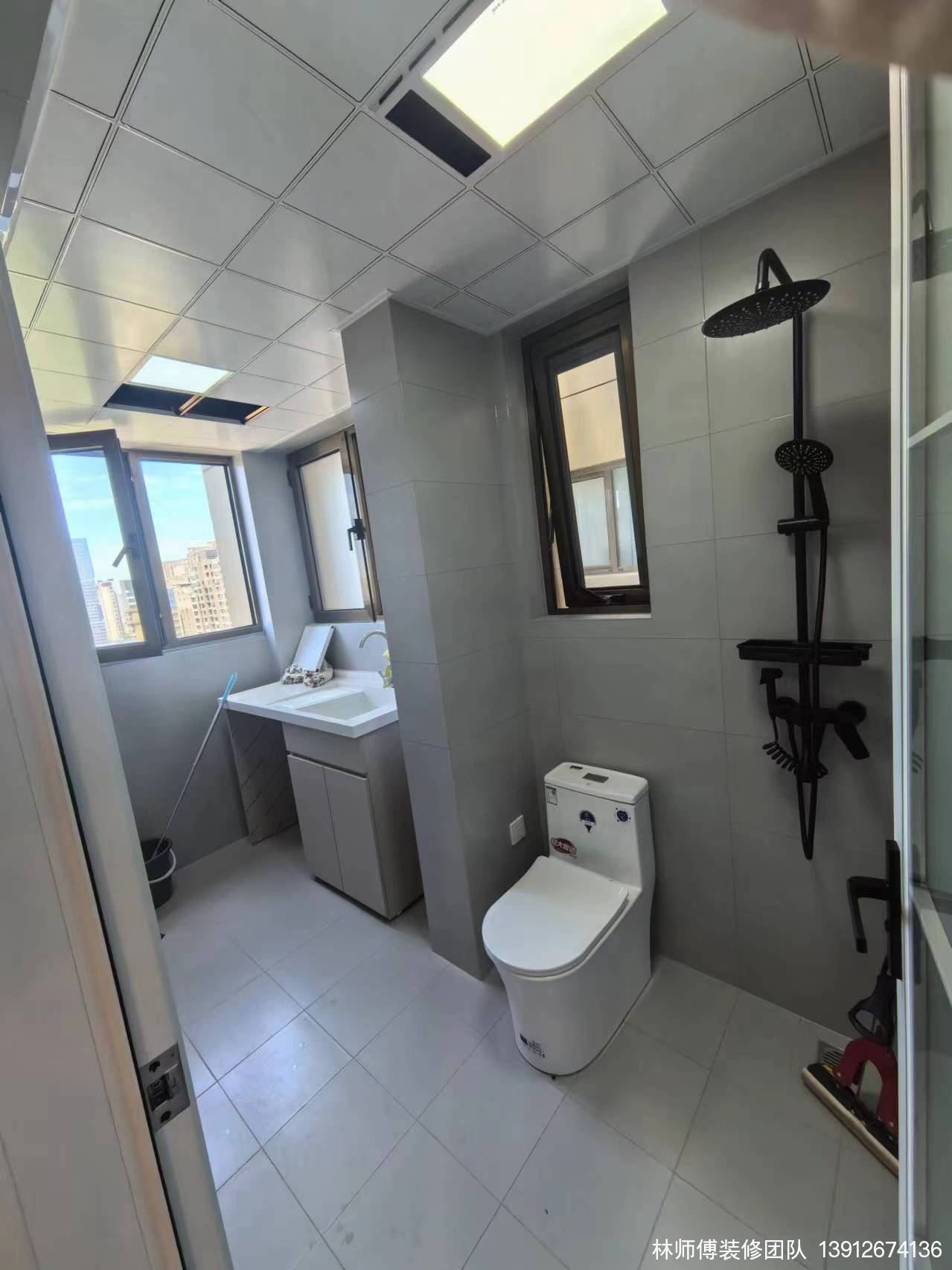 卫生间墙顶地面都选用了比较耐脏的灰色,更方便清洁打理。马桶、淋浴、水池,一应俱全。