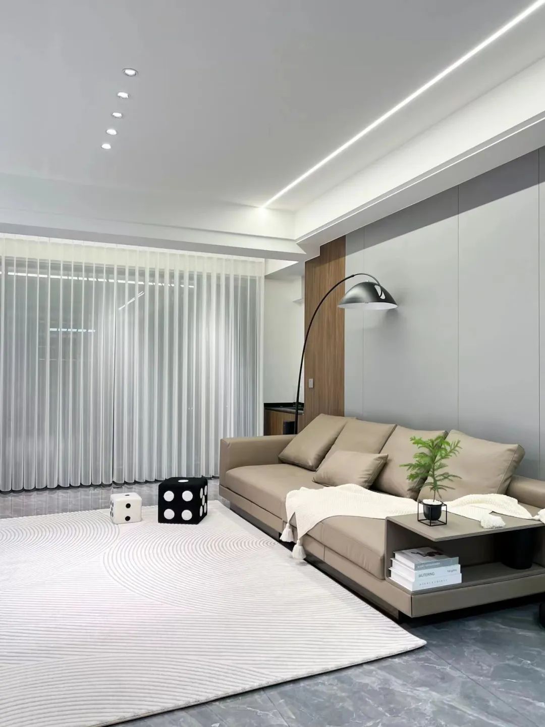 1、吊顶设计简约,经久耐用,灯光不要过多,够用即可,避免高贵冷艳的摆设。