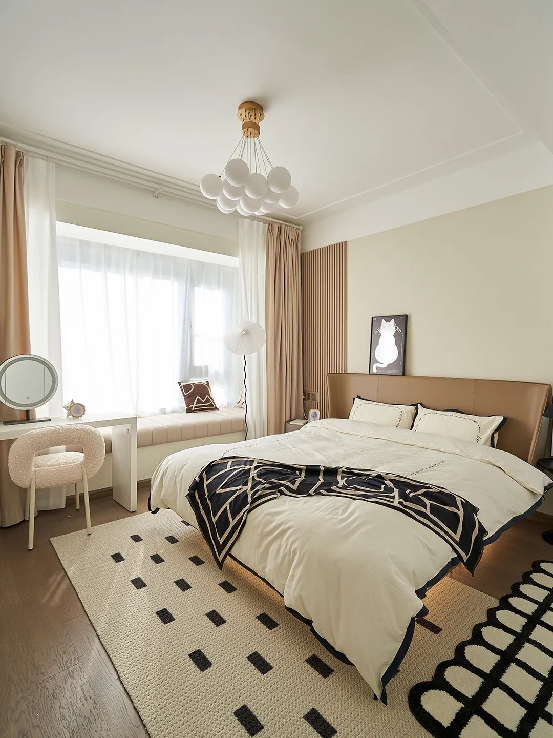1、窗帘颜色深一些或采用双层设计,以保证充足的遮光效果。