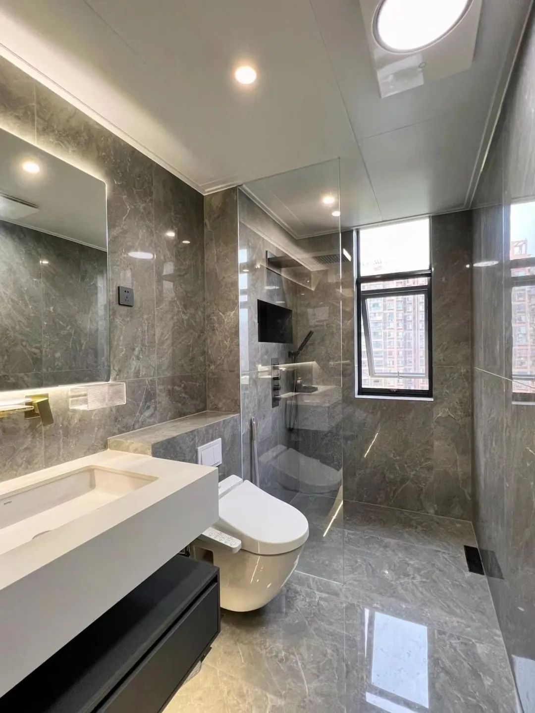 2、小空间卫生间选择素色瓷砖,避免花哨砖显得更小。