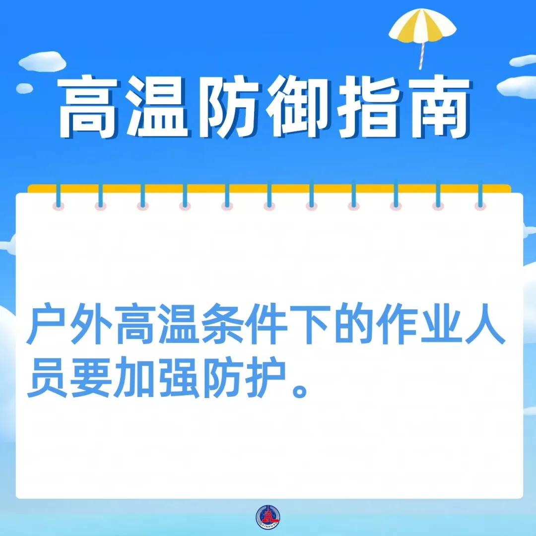 2.尽量避免在高温时段进行户外活动,高温条件下作业的人员应缩短连续工作时间。