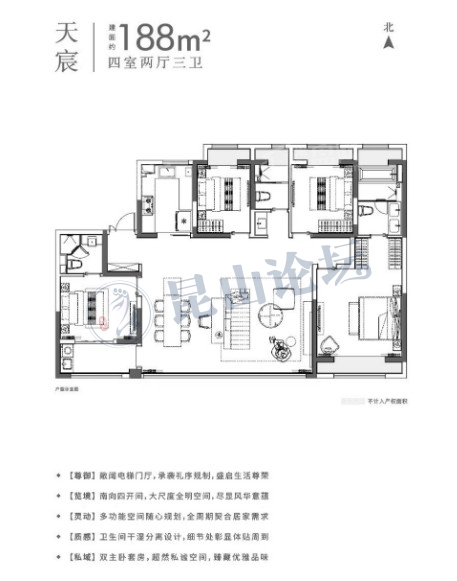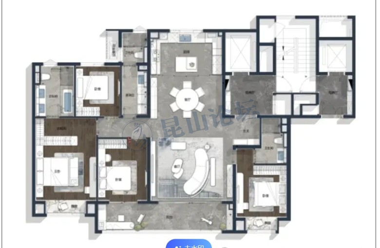 这两个都是昆山比较主流的大平层,一个是三房朝南,客厅大约5.6米面宽,另一个是两房朝南,面宽感觉至少有7.5米,你喜欢哪个呢,我觉得一图的厨房更引吸我,二图的面宽和主卧的衣帽间形式我更喜欢 .u`A4;;Gw