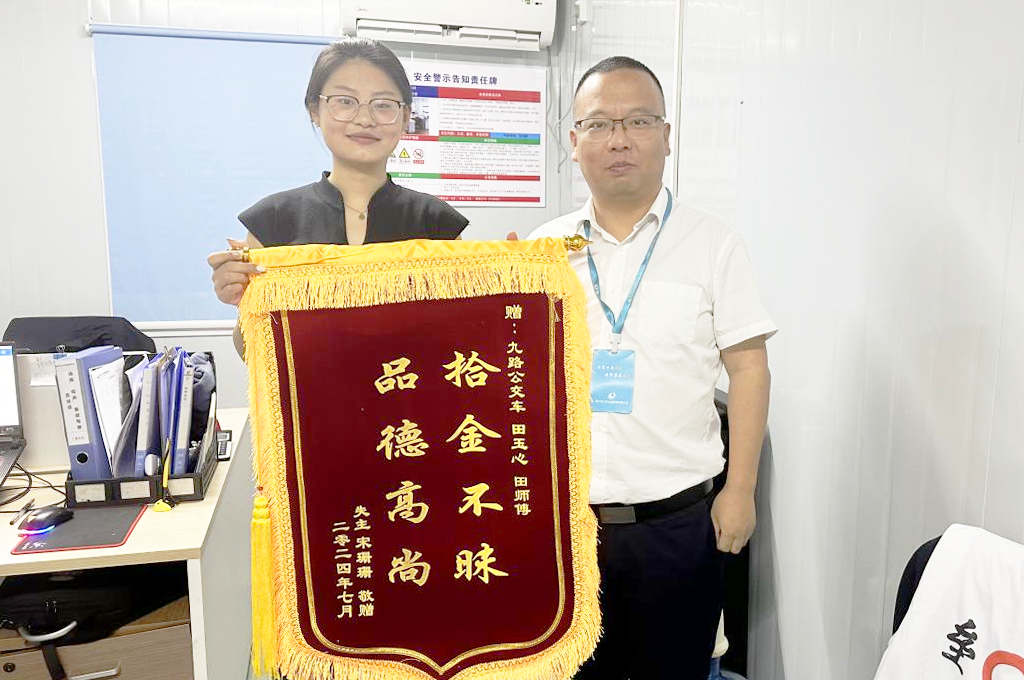 7月29日,公交9路驾驶员田玉心拾金不昧,将手机物归原主获锦旗。
