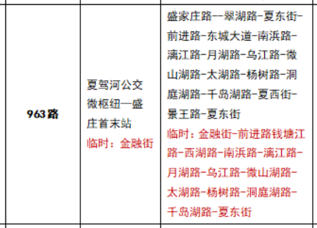 目前963路因东城大道施工绕行钱塘江路,建议963路更改核定走向一直绕行,增加设站:钱塘江路龙腾路(覆盖218路原站点)、西湖路东城大道。以后永旺建起来后还可以在前进路增设一站,方便出行。