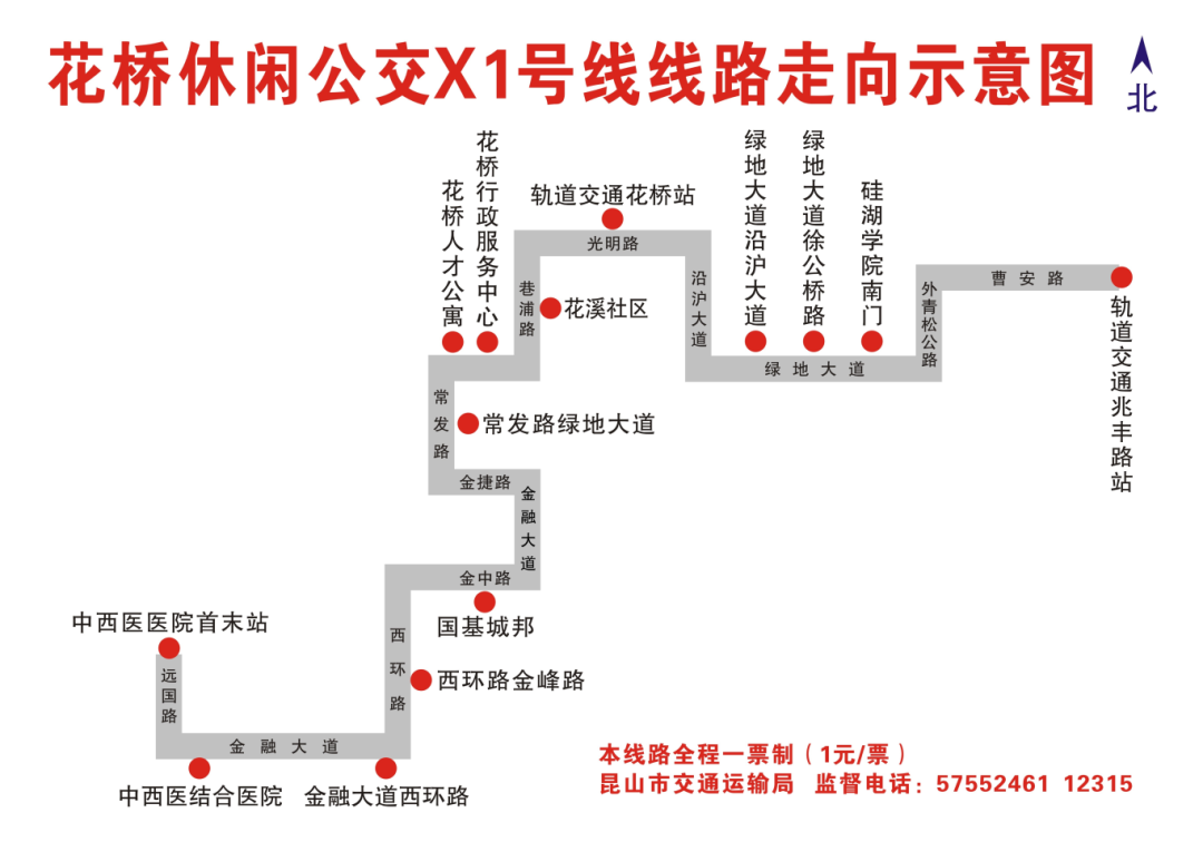 (2)花桥公交X1号线走向调整,取消:“国际信息城、华道数据、服务外包基地、远洋数据”,同步增设:“花溪社区、轨道交通花桥站、中西医结合医院、中西医医院首末站”。