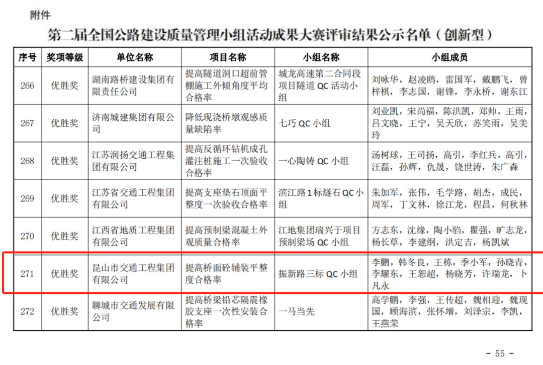工程集团以品质工程建设为支撑,以科技创新为引领,实现以技术保品质、以创新促品质,不断提高工程质量和安全水平。项目获评江苏“平安工地”苏州市“平安百年品质工程”,荣获第十三届“创新杯”建筑信息模型应用大赛二等奖第二届全国公路建设质量管理小组活动成果大赛优胜奖等,申报省级工法1,授权实用新型15发明2软著10等,履约考核中多次达“优”,并多次获得上级主管部门的通报表扬。