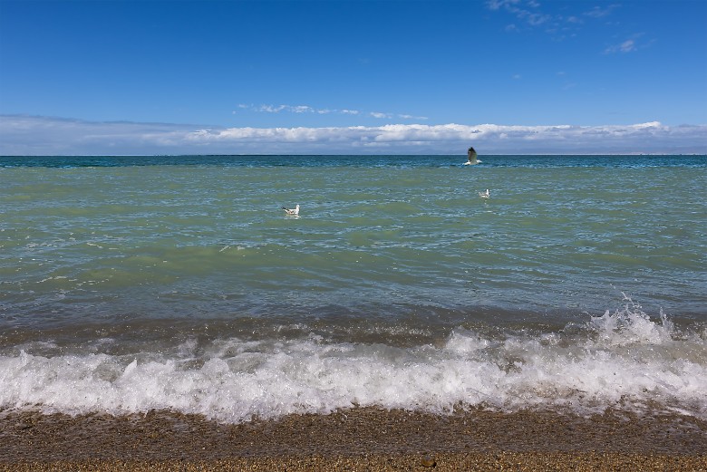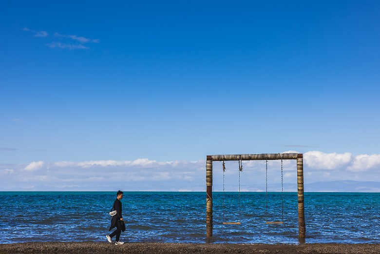 茶卡盐湖的湖面银光闪闪,美丽而又不失优雅...