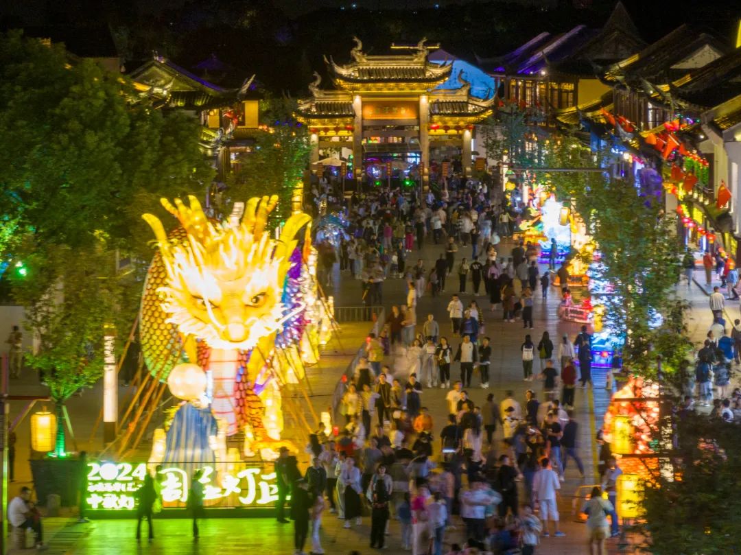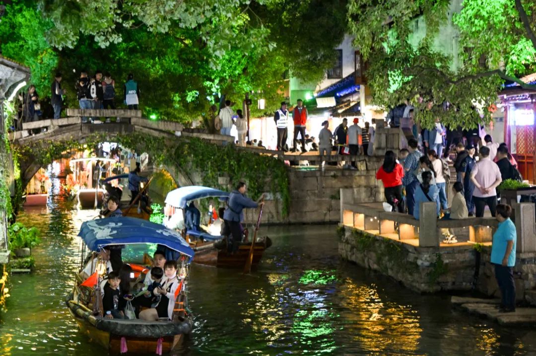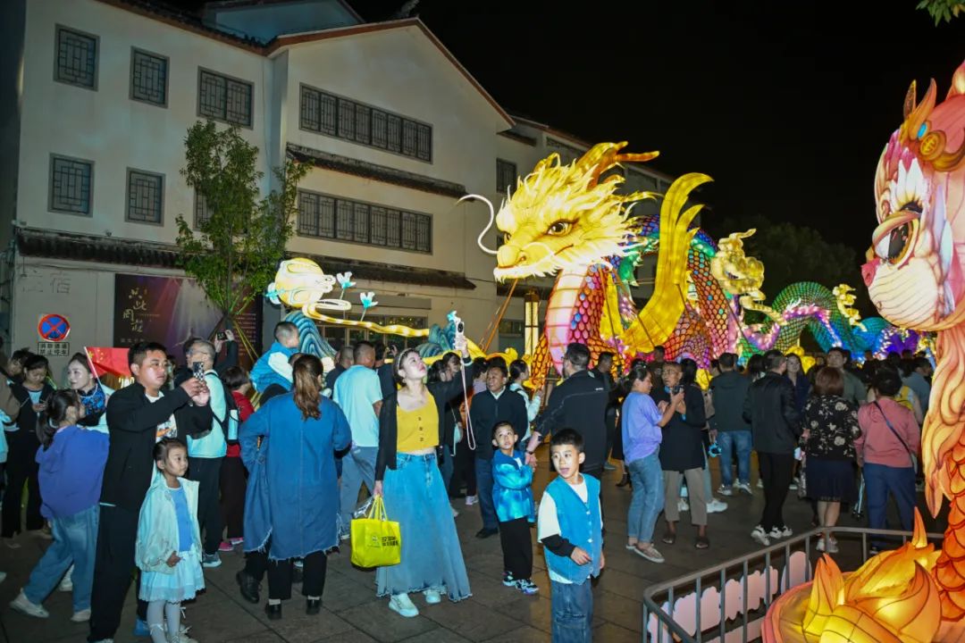 夜幕降临,周庄灯区已经迎来了大量客流,游人穿行于“灯海”之间,仿佛置身于一幅流动画卷,沉浸在浓厚的江南韵味之中。流光溢彩的灯组,吸引了不少游客拍照留念。
