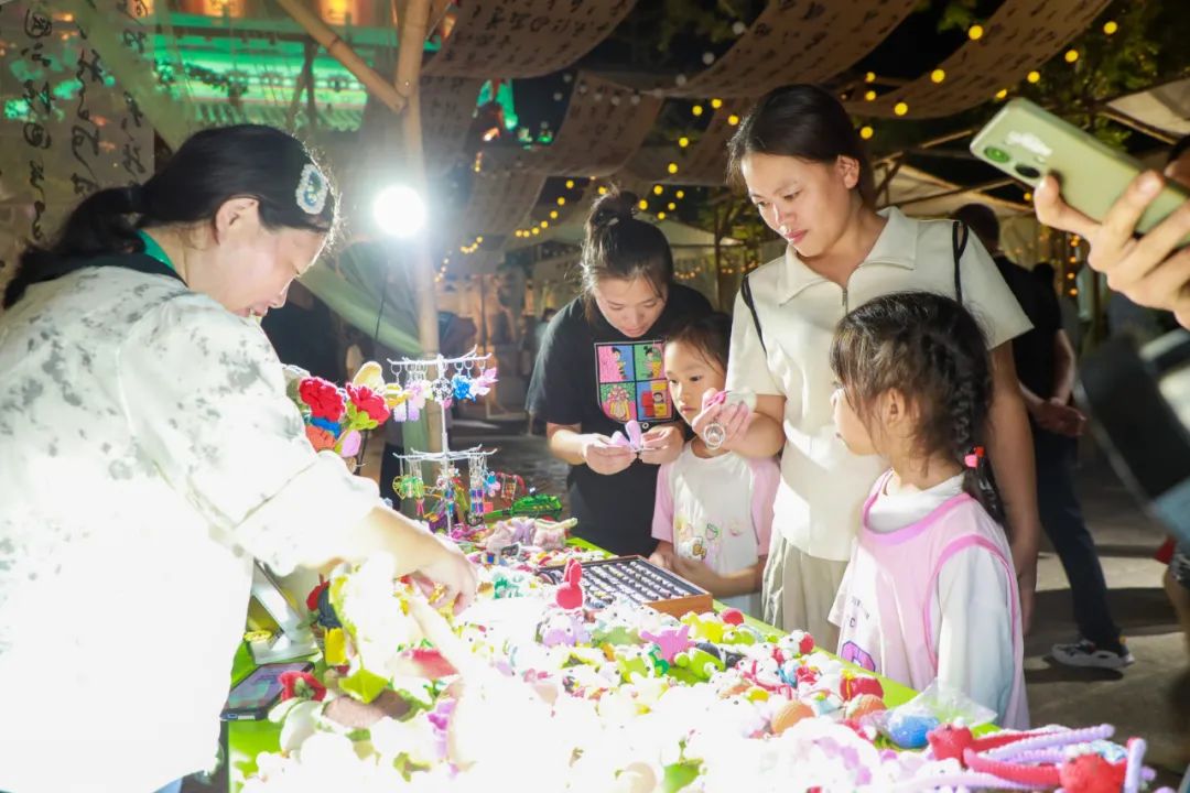 在慧聚广场后山花园,月之韵·雅韵市集吸引了不少市民游客前来“赶集”。众多精美的创意互动摊位,汇集了书法、茶饮、咖啡等诸多文化元素和创意灵感的文创产品,许多市民纷纷驻足观看,有的还参与到各种趣味活动中打卡、体验。同心阁古戏台也变身成了梦幻般的舞台。歌舞、武术表演、合唱、民乐...….缤纷的演艺节目目不暇接,演员们载歌载舞,吸引了大批市民游客驻足观赏。