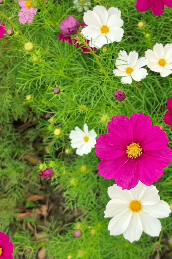 秋英学名Cosmos,希腊文原意有宇宙、和谐、秩序、名誉、善行等正面意义。