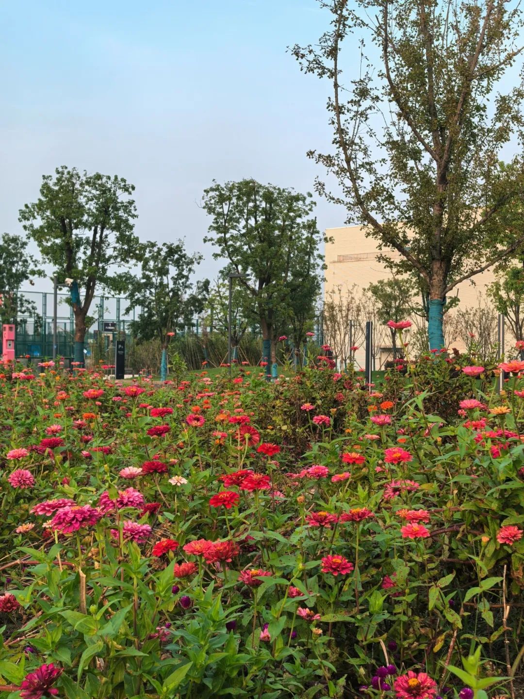 在奥体的花园小路里,寥寥几朵浅蓝色的小花和色调金黄的秋天,搭配起来格外清新。