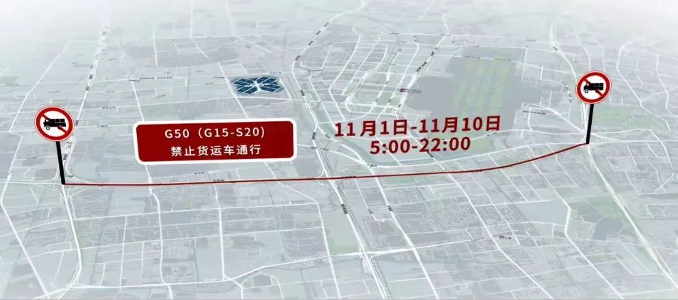 (一)11月1日至11月10日,每日5时至22时,G50沪渝高速(G15沈海高速-S20外环高速)双向禁止载货机动车通行。