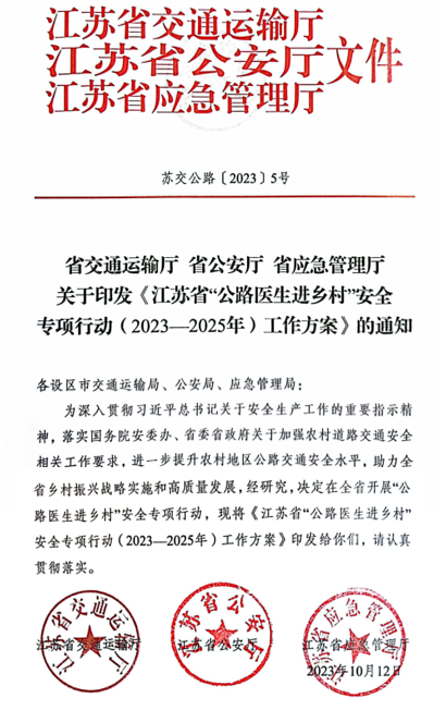 通过组建“公路医生”团队,深入一线开展进乡村、进路段、进讲堂行动,为农村公路管理送专家、送技术、送服务。计划3年内以点带面提升农村公路交通安全水平,全面夯实农村地区公路交通安全基础。
