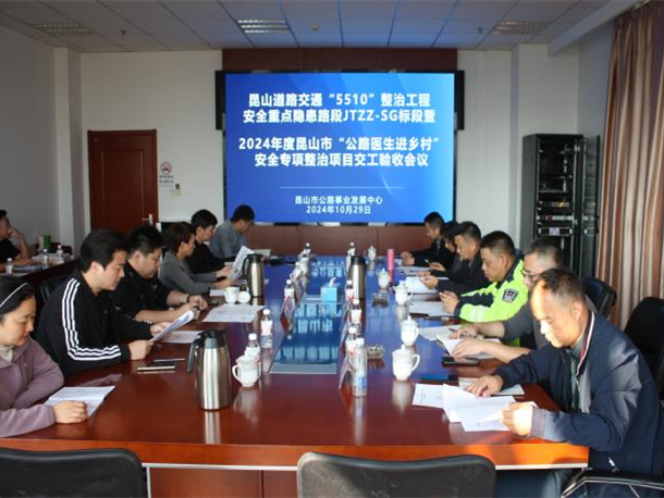 近日,昆山道路交通“5510”整治工程标段与2024年度“公路医生进乡村”安全专项整治项目迎来交(竣)工验收,苏州市公路事业发展中心、交警支队,昆山市交通局、交警大队,以及项目设计、监理、施工单位代表参加会议。