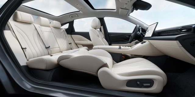 后排空间超越 B 级车,座高 320mm,腿部空间 943mm,臀部角 94.1°,扶手宽大,拒绝小板凳。
