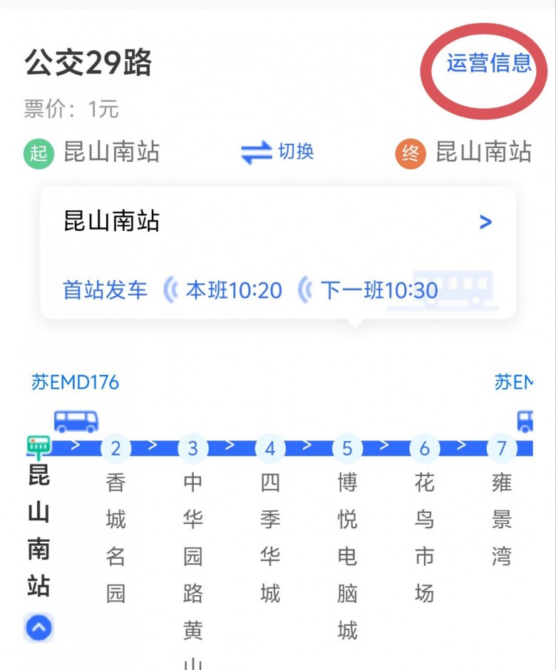 因为这个时间点 公交车空车前往始发站 29路现在改为环线了 首班车绕圈回到博悦电脑城去昆山南站都要七点多了 6点多的车全是司机去始发站