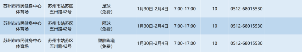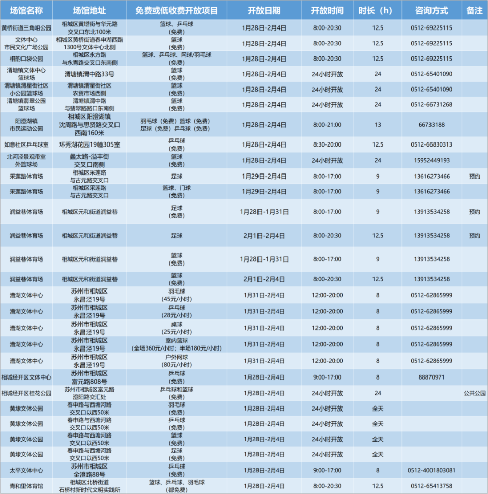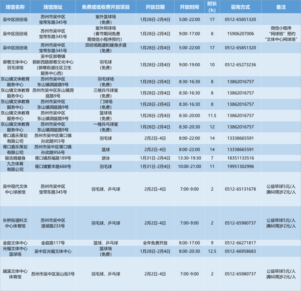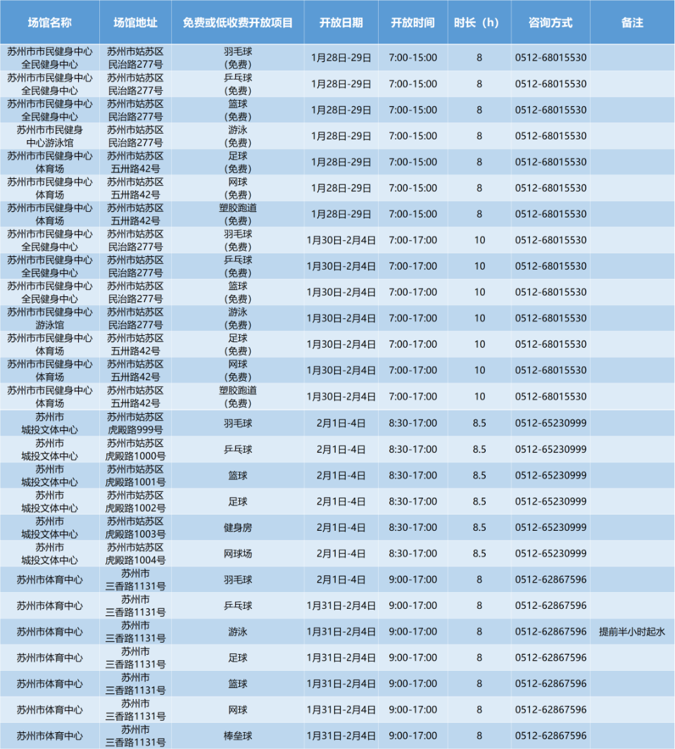 [百姓话题]新春佳节期间,苏州市中大型公共体育场馆免费或低收费开放! [复制链接]