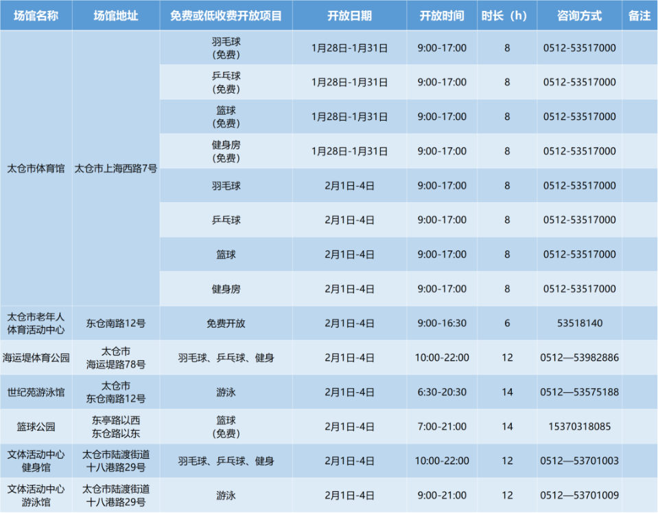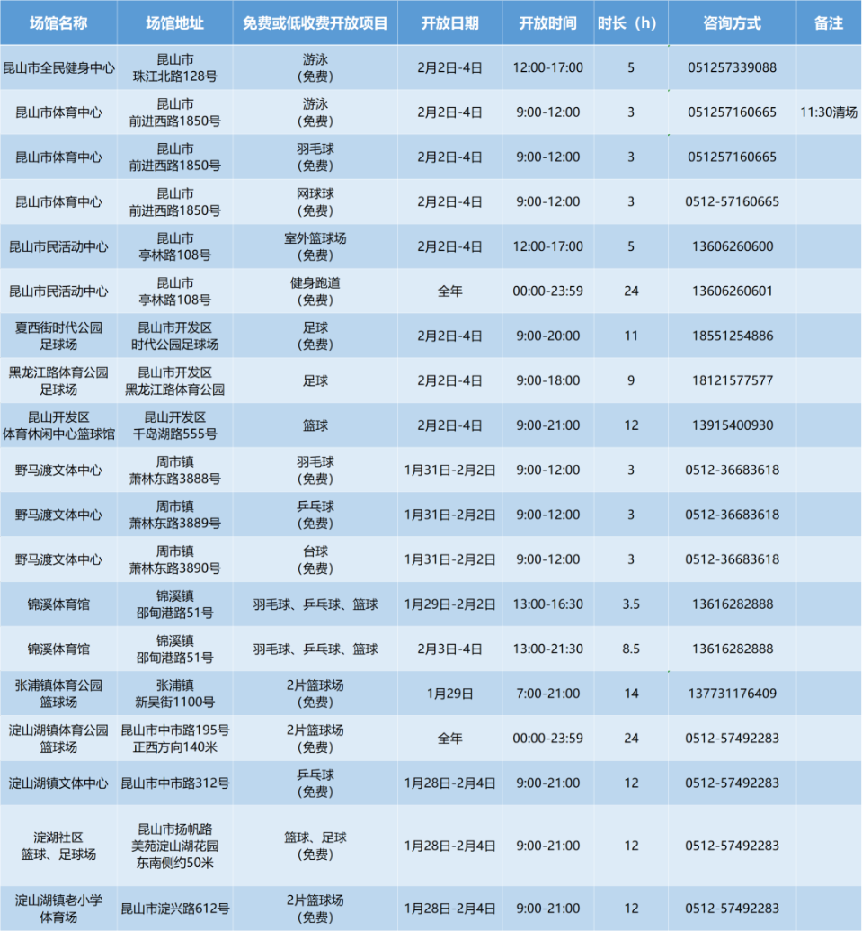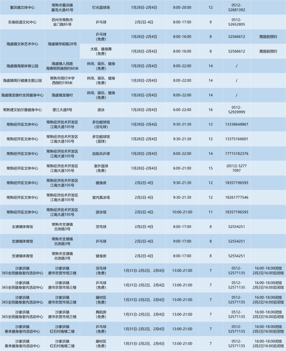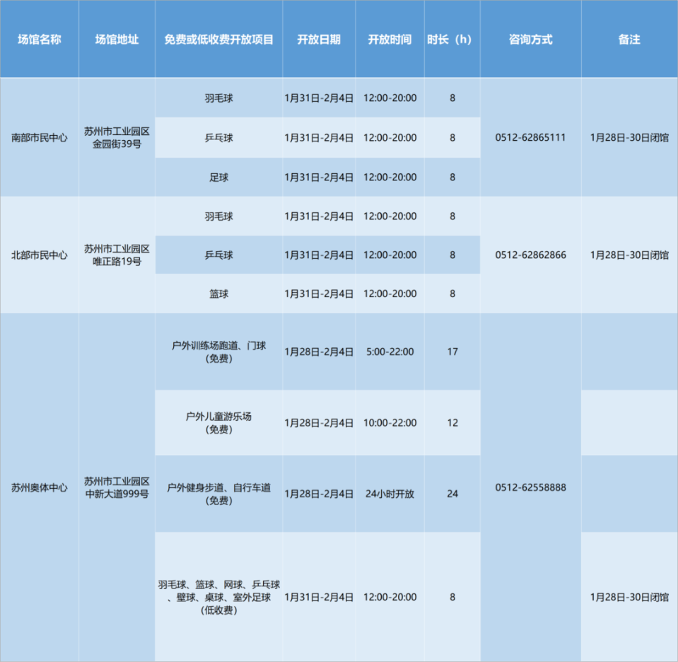 [百姓话题]新春佳节期间,苏州市中大型公共体育场馆免费或低收费开放! [复制链接]
