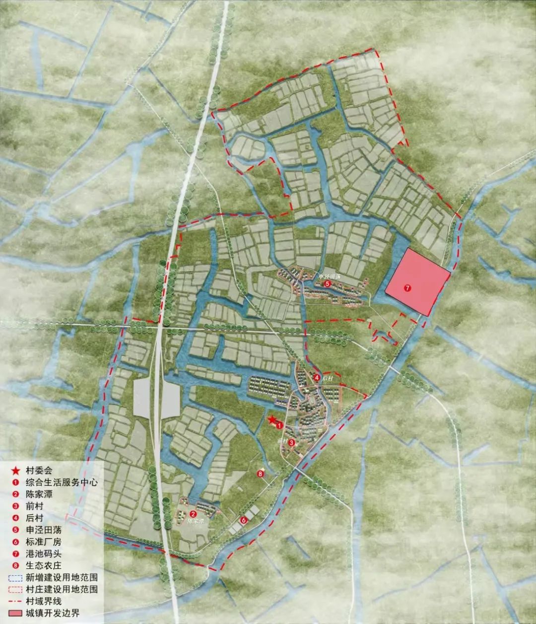 根据《昆山市镇村布局规划(2019版)》,规划范围内共6个自然村,其中集聚提升类村庄3个(前村、后村、申泾田荡),其他一般村庄3个(俞家墩、陈家潭、储巷)。