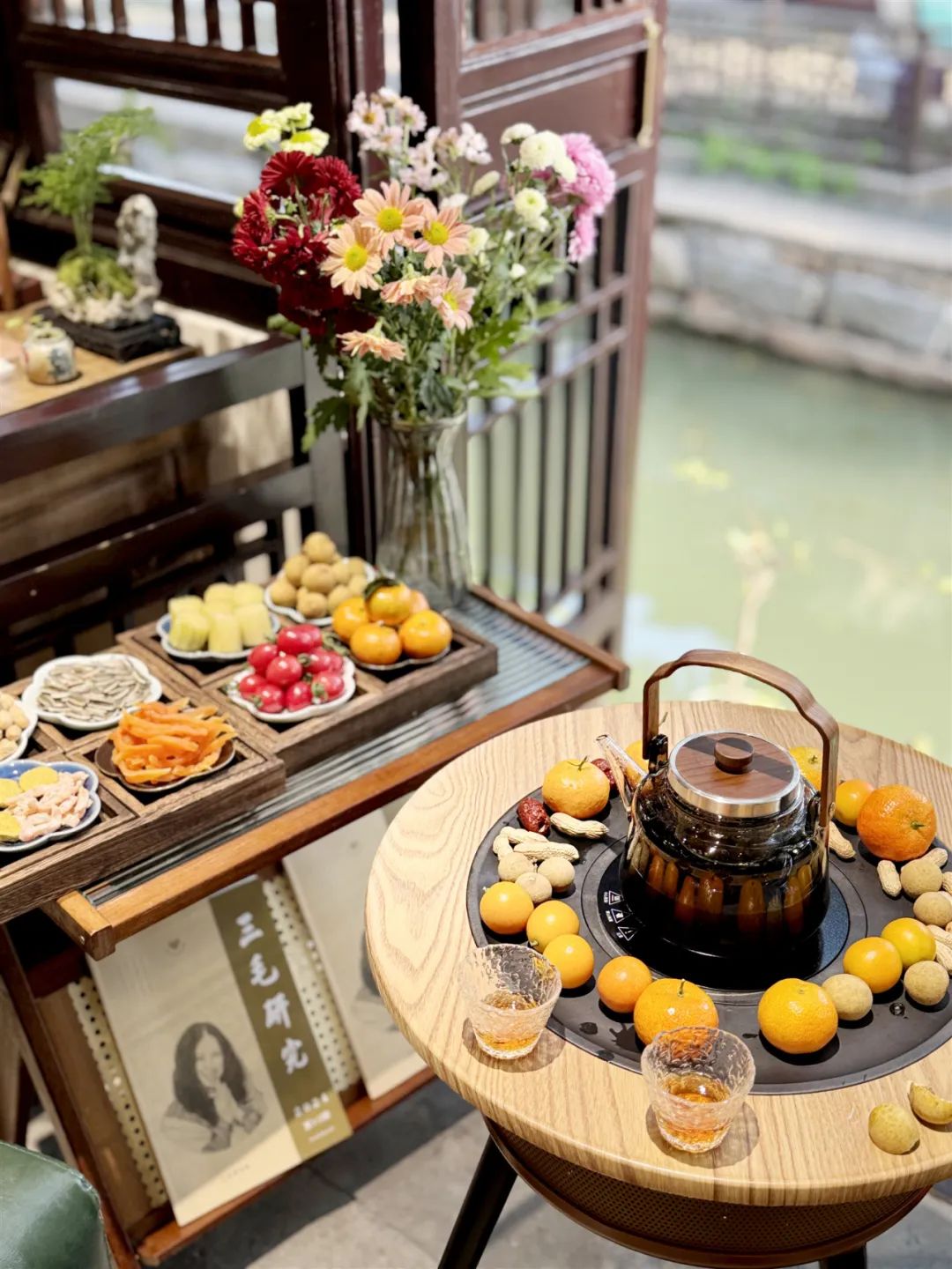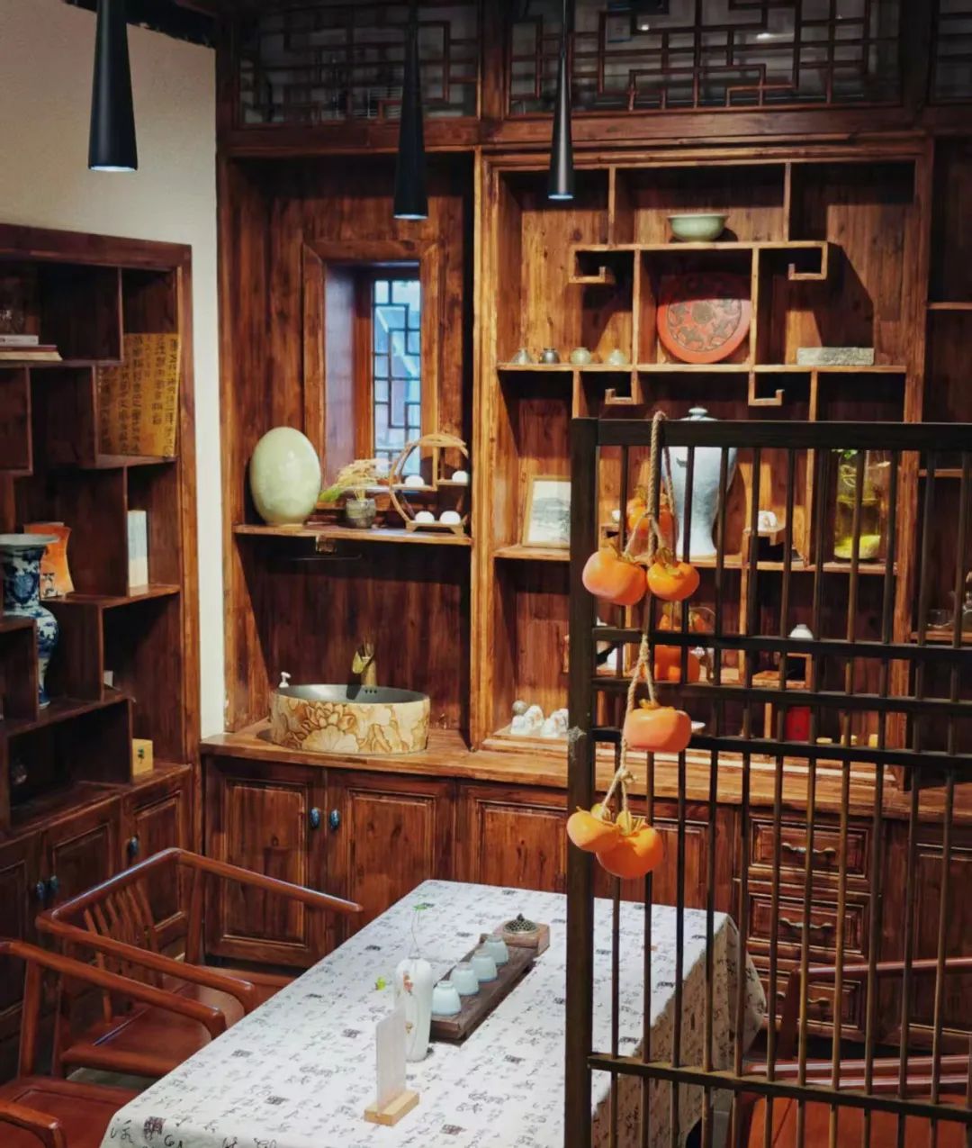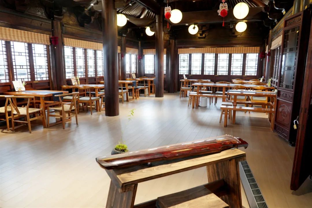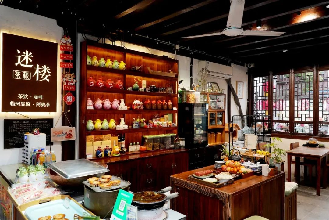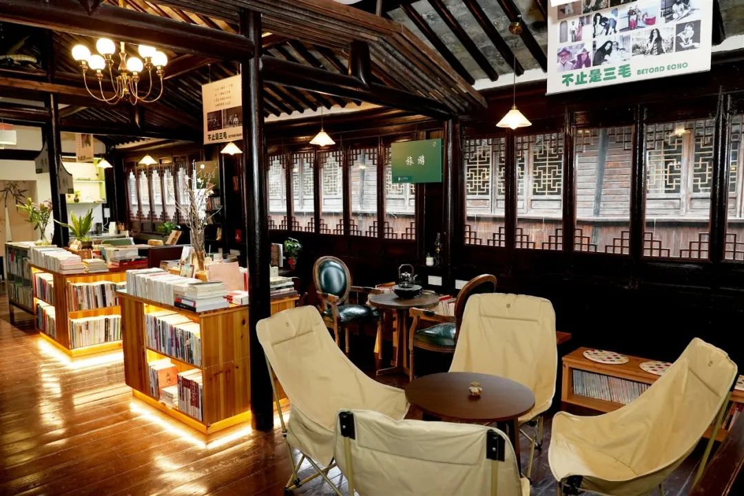 店内古色古香的装饰与禅院的氛围相得益彰,书架上陈列着关于锦溪镇史、民俗文化的书籍,每一本都承载着古镇的记忆与故事。这里不仅是书店,还是茶室,提供着精致的茶点和宁静的品茶空间,让人在茶香中品味生活,于书香中感悟人生。