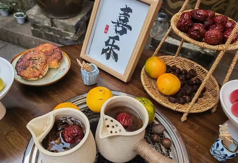 茶馆内,环境布置得文艺而温馨,东厢房中,时光在茶香中悄然流逝。茶食,是这里的一大特色,山核桃味的瓜子与酥而不油的糕点,甜度刚好,让人回味无穷。