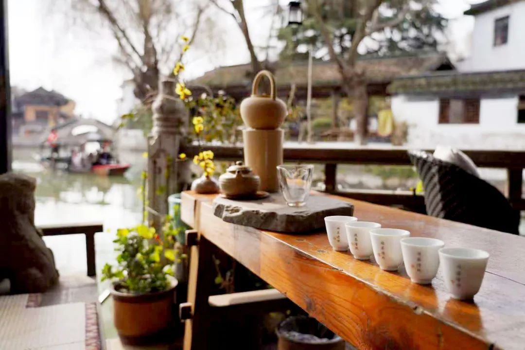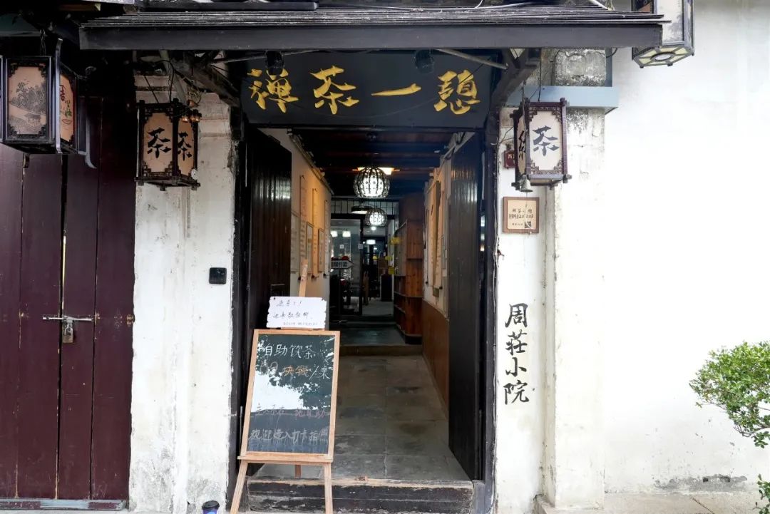 在周庄古镇的石桥流水旁,禅茶一憩茶馆悄然坐落,宛如一幅静谧的水墨画卷。