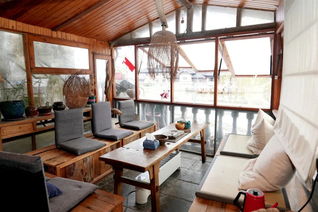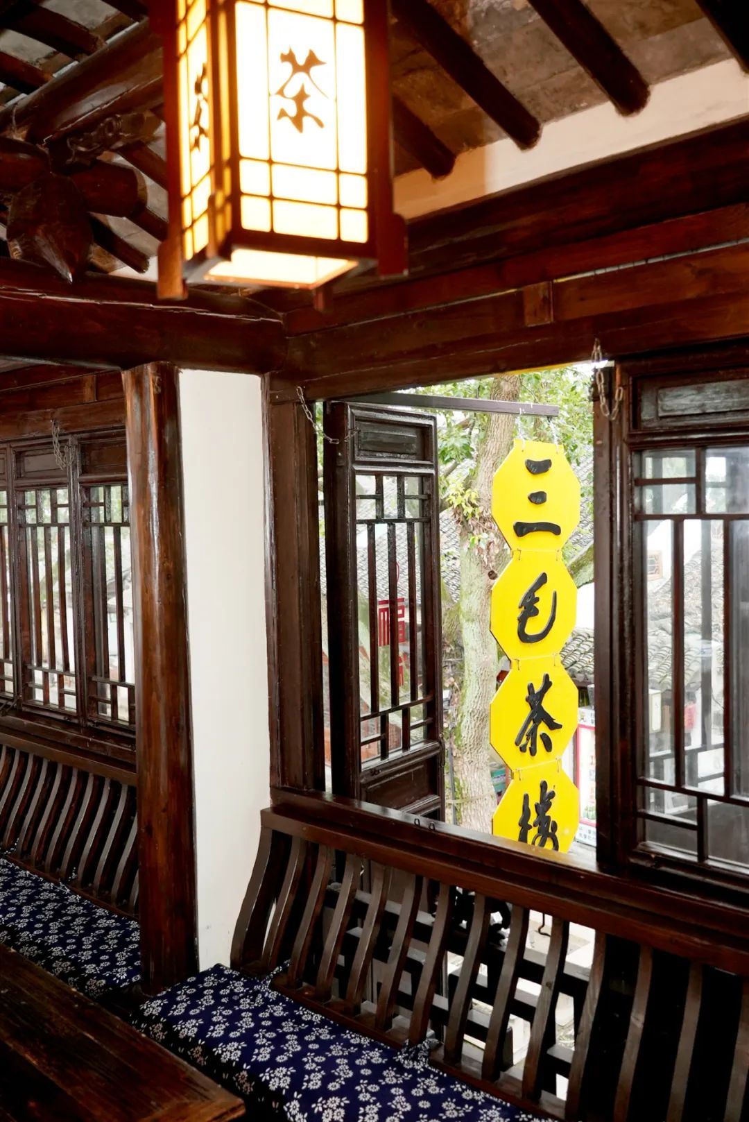 这是一家占地约三百多平的茶馆,坐落于锦溪古镇的静谧一隅,仿佛是时光的低语者,轻声诉说着岁月的故事。