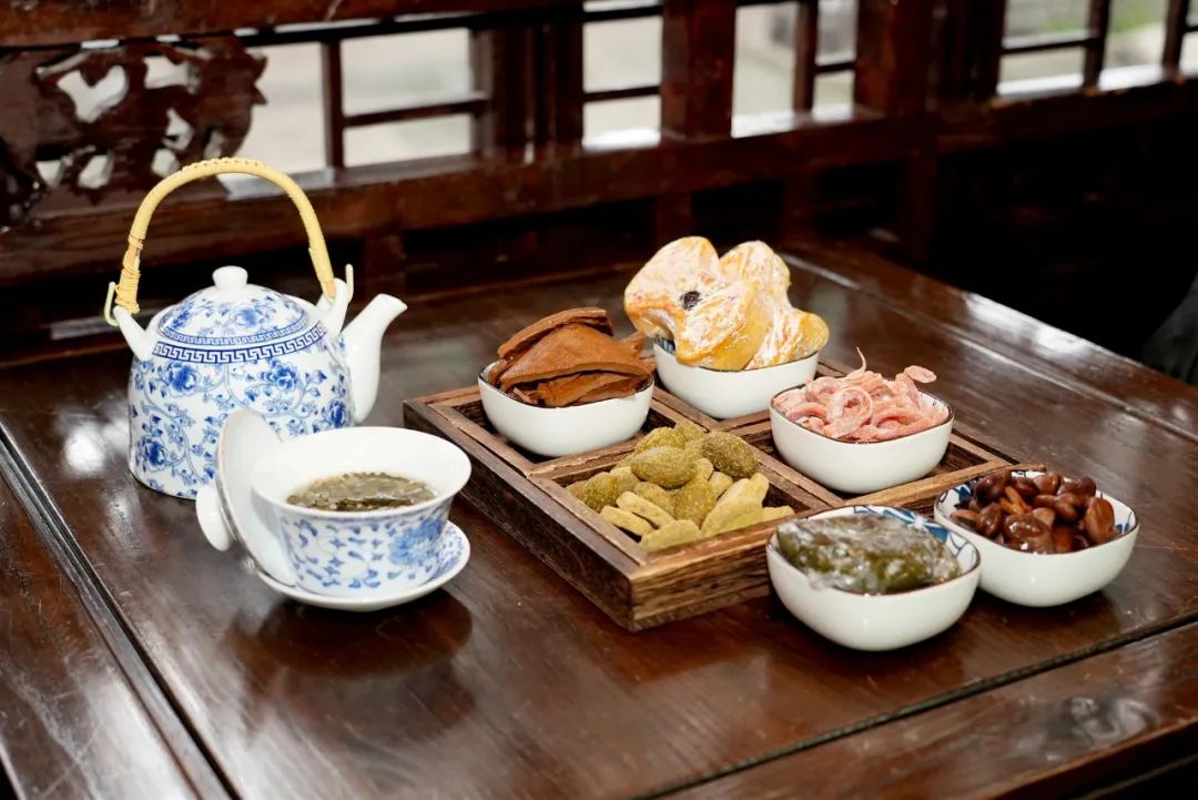 茶楼内,店主的热情与猫咪的慵懒,为这静谧的空间增添了几分生动与温馨。坐在店内,品一口阿婆茶,尝一块海棠糕,每一味都是古镇的深情与怀念。