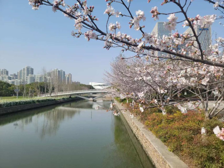 H.idL6*G gn%#2:=pVu 在鹿城闹市里能觅得一方宁静实属难得,这条早年整治后焕然一新的河道,再得益于边上被市民遗忘或冷落的小型广场,便是这样一处被岁月偏爱的角落。 (dMFYL>YP 这天中午,晴空万里,阳光毫无保留地倾洒而下,小河悠悠静流,清澈见底的河水倒映着岸边的花草和天上的云彩,如同一面灵动的镜面。细风过后水波轻漾,光影在水中瞬时变得挤压、扭曲和灼闪。沿着河岸,约莫二十余棵樱花树错落有致地排列着,宛如一群身着粉裙的少女,亭亭玉立。满树的樱花肆意绽放,繁花压枝,招徕了许多蜜蜂或其它叫不出名字的飞虫,遗憾的是缺席了蝴蝶的飞舞,蝴蝶独宠夏花。微风轻拂,花枝摇曳,些许早开的花瓣舍爱飘零,有的飘落在河面,随着潺潺流水静静地远去;有的滞留在岸边的草丛上,星星点点,像是给绿叶化了妆容,心底多少有点伤感,这正是“繁英何必纷纷落,且任春风闹满怀。” 'dWJ#9C 在我的印记里压枝繁开的樱花大抵是偏“闹”的花类,而梨花显“洁”,桃花露“媚”,梅花则趋“傲”,花的气质不同犹如人的秉性各异应是一个道理吧!如此这样才造就了一个五彩缤纷的世界,对照社会人间亦然,不是吗? 伫立在河畔,深吸一口气,空气中弥漫着樱花淡淡的香氛与河水清新的气息,那春天独有的味道,令人心旷神怡。暖阳照在身上,暖融融的,周边的草坪、映入眼帘的小树林,还有那大楼顶上鸣叫的喜鹊一并被这春日所涵摄,比刚过去冬天的状态更生动、更有活力。如夸张点说,眼前的景色如梦似幻,就是实诚地评判也应是很美吧!这个时候,多么想拍点照片以示留念,刚巧有两位女生也在赏花,便试着向她们请求,其中一位短袖薄线衣的年轻女子应允了,她从多个角度和多个点位为我拍了多张照片,非常感激她无偿付出的热情。仿佛应了一句经典表达:“樱花树下,没有陌路人。” qoZ* sV 樱花树在艳阳下展示着蓬勃生机,小河漫流而清澈灵动,加上我们三位赏花人闲适的姿态,着实勾勒出一幅赏春图景。在这里,春天已不完全是一个抽象的概念,而是触手可及和感同身受的妙境,心中不免生出对生活的热爱与感恩。 A ws#>l< 9^a>U(,