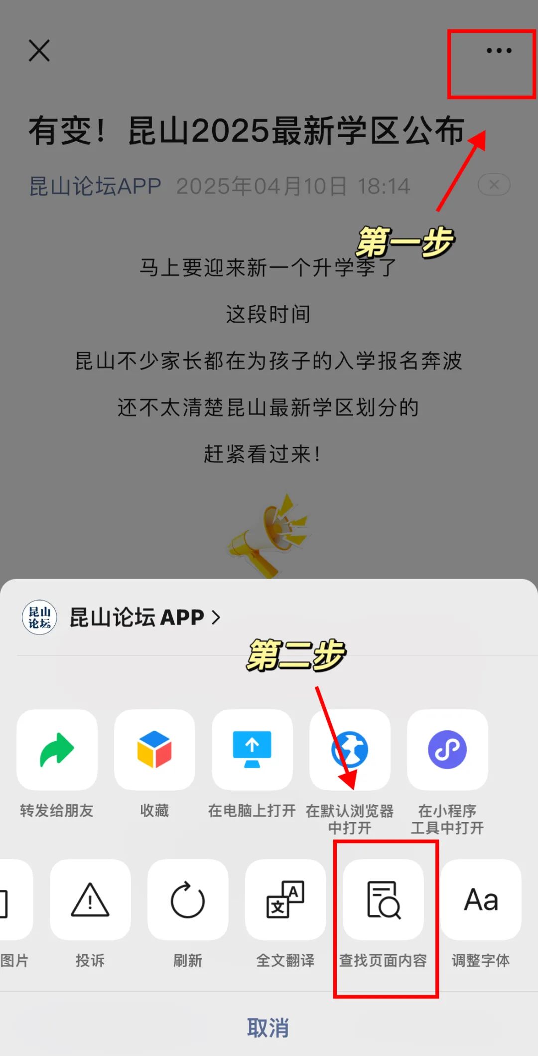 家长可以点击右上角再戳放大镜“搜索页面内容”输入小区名称,查找更迅速