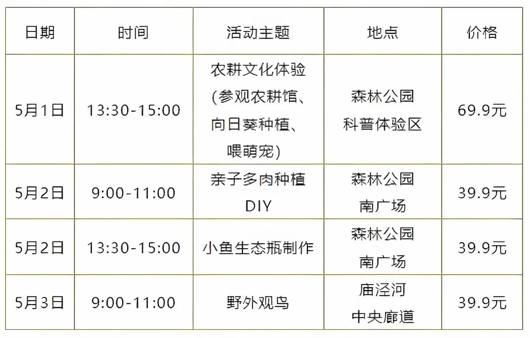 活动时间:5月1日-5月5日,下午13:00-15:00