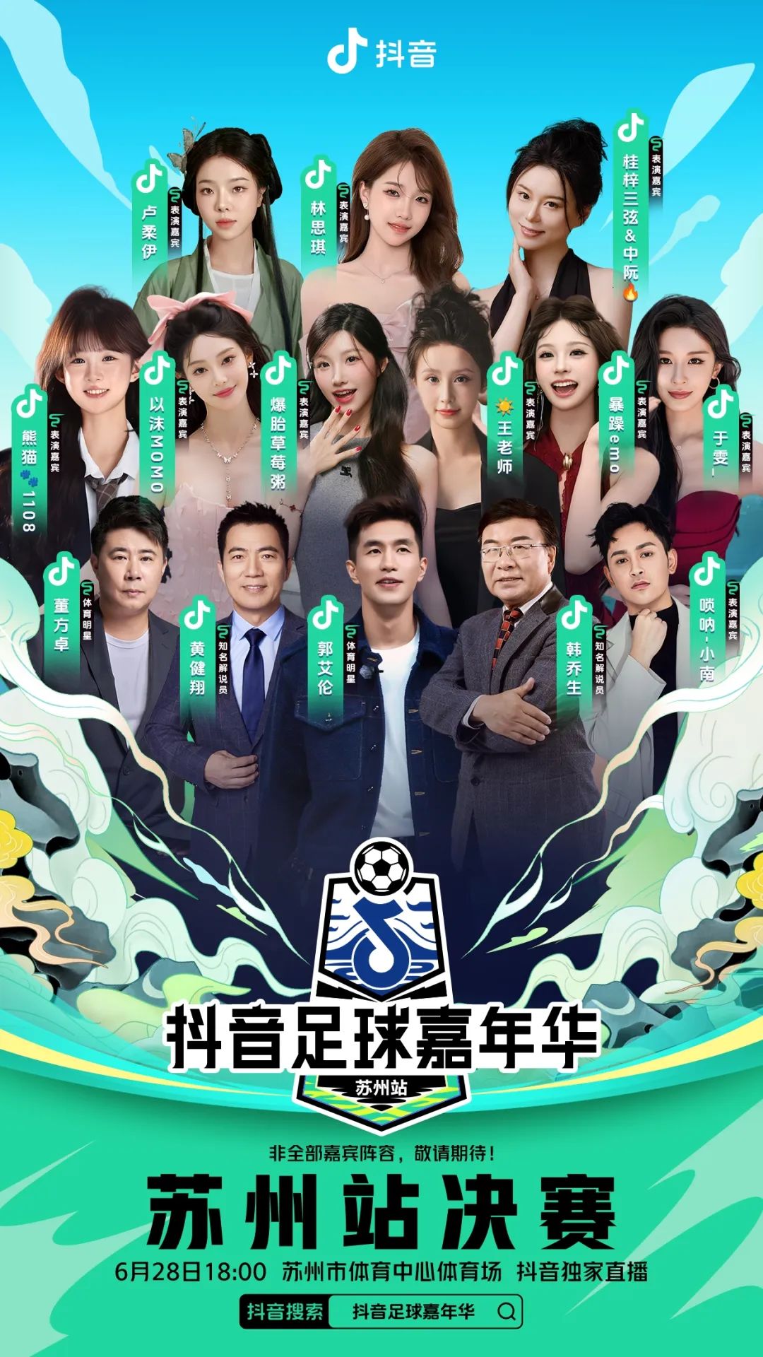 爆胎草莓粥、暴躁emo 、桂梓三弦&中阮、林思琪、卢柔伊、唢呐-小南 、王老师、熊猫1108 、以沫MOMO、于雯_(足球赛+演唱会?安排!)