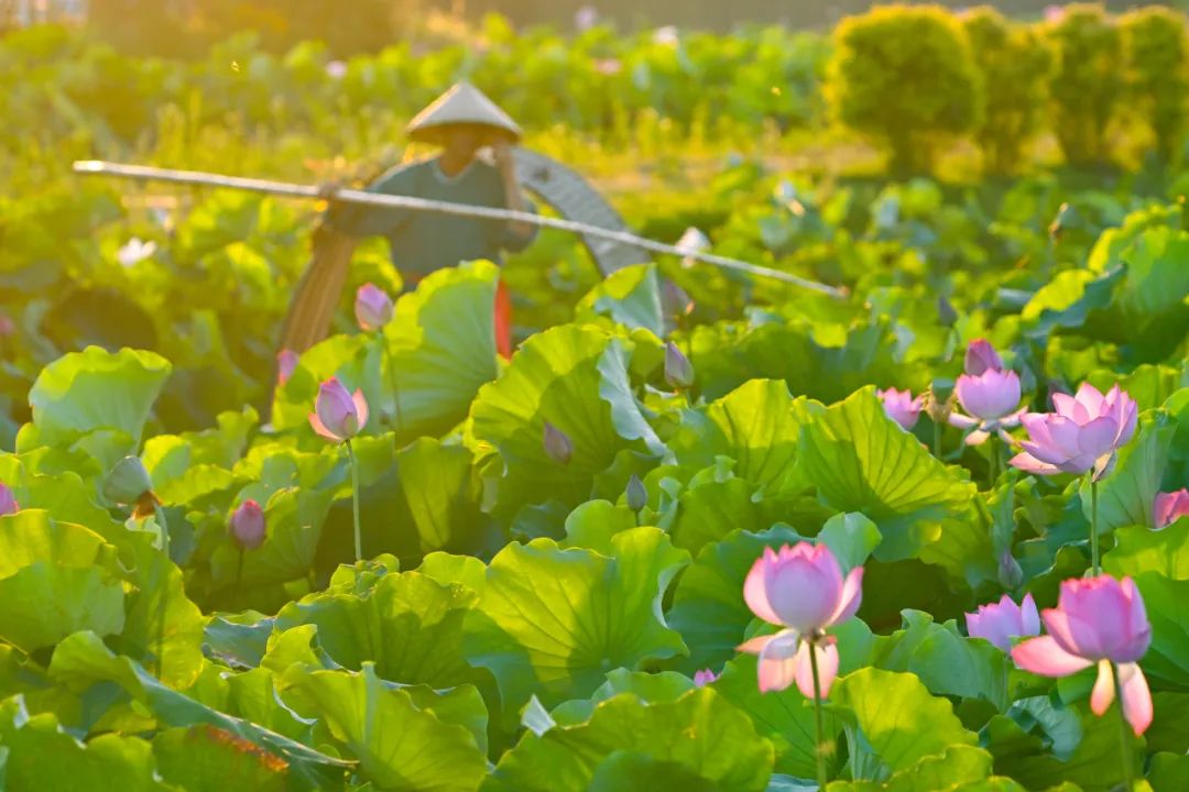 荷叶罗裙一色裁,芙蓉向脸两边开