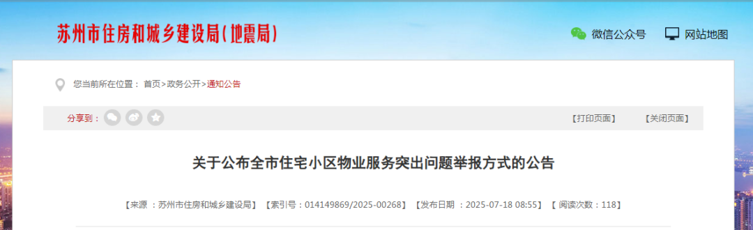 [百姓话题]刚刚公布!苏州举报物业不作为的官方通道来了! [复制链接]