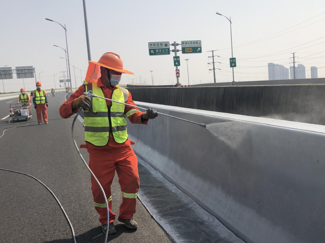 本次预防性养护创新采用“超抗污混凝土防护系统”,如同为防撞墙披上了三层“科技铠甲”: