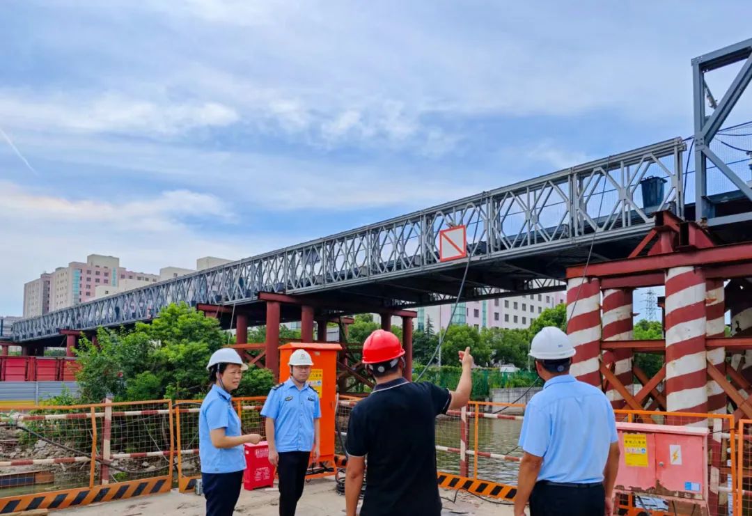 在钢结构安装施工过程中,高度重视关键节点质量安全管控,强化全过程监管举措:开展综合督查,重点检查主桥钢箱提篮拱首件执行、按施工组织设计及专项方案施工落实情况;采取随机抽查方式,通过"现场步检+非现场检查"相结合的形式,着重排查扬尘及噪声污染防治措施,并对汛期和暑期可能存在的重大隐患进行专项检查,多措并举确保钢结构安装施工全过程的质量安全处于受控状态。加工区大桥下部结构全部完成、主桥钢箱提篮拱顺利完成首件安装,为项目整体建设进度提供了坚实保障。