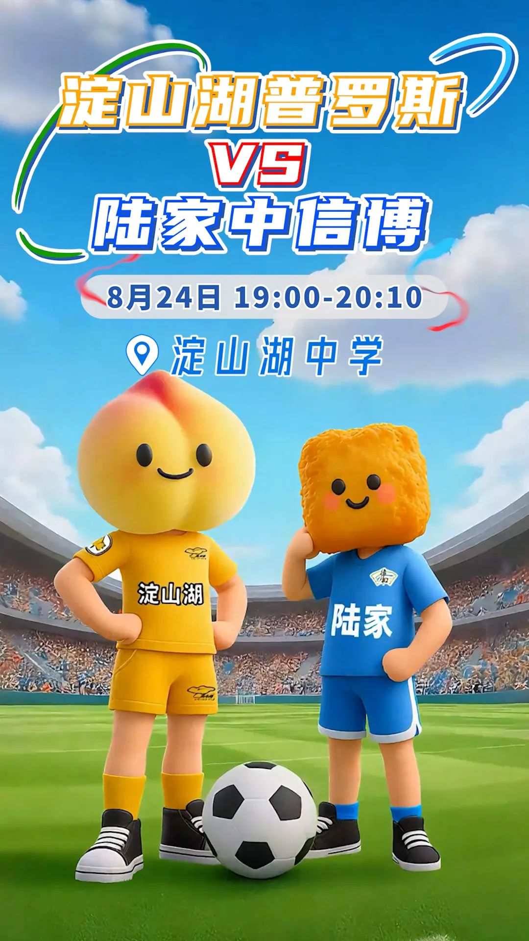 就在明晚! 8月24日 晚19:00 淀山湖普罗斯将回归主场 在淀山湖中学足球场 迎战陆家中信博!